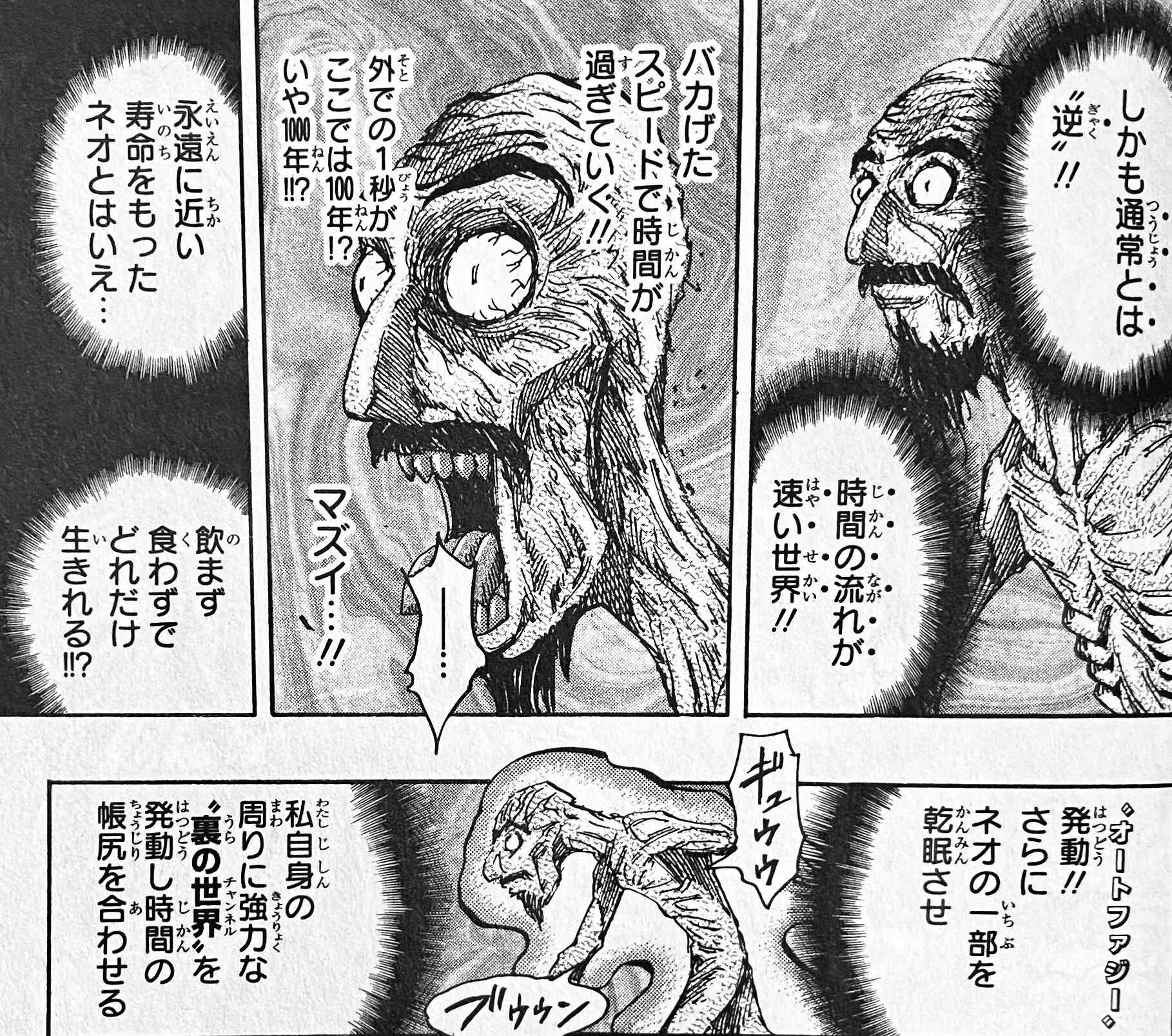 391話 ニトロ しかもこれは ブルーニトロか んお 見たこともない食材があんなに沢山 多すぎる 果てが見えんほどの量じゃ あ あなたは 冒頭 前回ラストに引き続きネオの腹の中 を探索する一龍 壁